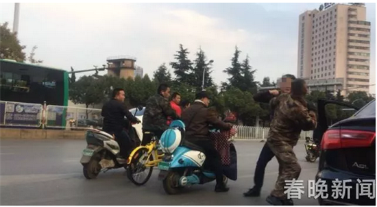 据目击者鲁先生回忆,在西园路大观路口转向滇池路方向上,奥迪车与电动车因为在行驶过程中“被别”。双方都感到不满,于是两“路怒族”先是发生了争吵,接着双方上演全武行,在路边大打出手。打了3分钟后别路边围观的好心人劝开,期间双方都有“挂彩”,随后两人被民警带往派出所调查。