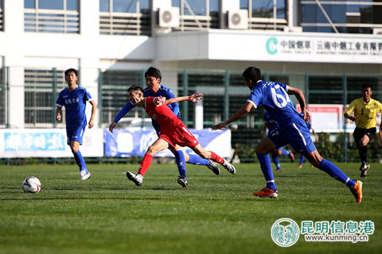 在上午进行的三四名决赛中,昆明足协U16队10比5大比分战胜沣信钢材,获得了本次赛事的季军。