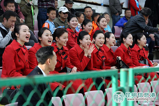 当天的决赛吸引了大批球迷到场观赛,两支球队也带来各自的拉拉队,昆明东远足球俱乐部的助威团敲击着锣鼓为球队鼓劲,而红土航空的后援团则是一群美丽的空姐。在球迷的支持下,两队球员们也奉上了本届擂台赛最为精彩的一场较量。