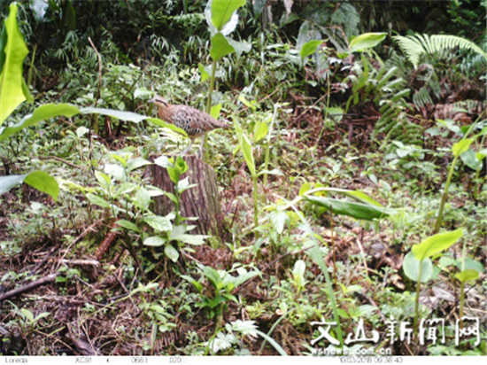 近日,云南师范大学生命科学院兽类研究组在西畴县进行野生动物监测时,通过红外相机首次监测拍摄到国家一级保护动物黑颈长尾雉、国家二级保护动物白腹锦鸡、红面猴及“三有”野生动物豹猫等珍稀动物。