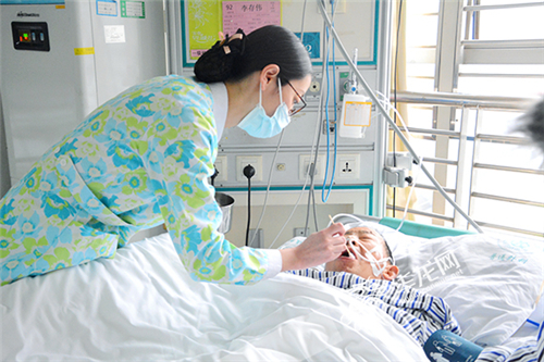 正在为患者转床的杨丽(左一)。 院方供图 华龙网发