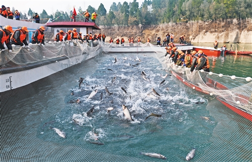 产业规模不小、比较效益不高的状况正在改变—— 中国渔业何以“减量增收” 经济日报·中国经济网记者 乔金亮 近年来,四川省广元市大力推进白龙湖、亭子湖等淡水湖泊的库区环境系统治理,改善湖泊生态环境。图为2018中国广元·白龙湖亭子湖生态有机鱼开捕仪式。 新华社记者 萧永航摄