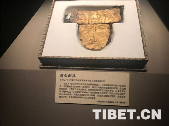 图为西藏自治区阿里地区扎达县曲踏墓地出土的黄金面具 摄影:吴建颖