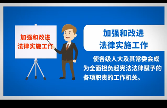 二是加强和改进法律实施工作,使各级人大及其常委会成为全面担负起宪法法律赋予的各项职责的工作机关。