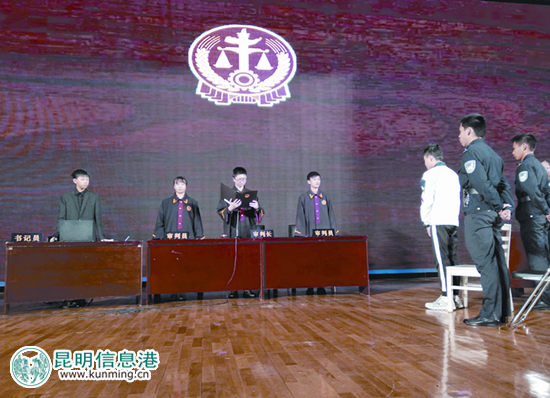 昆明信息港讯(昆明日报 记者赵春梅 实习生郭钰 宋冬琴) 在校园内因为一点小事发生口角,继而大打出手,打人者最终因故意伤害他人走上法庭接受审判……为加强法制宣传,增强学生的法律意识,日前,盘龙区人民法院的模拟法庭走进昆明市第十中学求实校区(以下简称昆十中求实校区)。法官、律师、审判员、书记员、嫌疑人等模拟法庭的各个角色都是由昆十中的学生扮演,学生们上了一堂生动的法律课。