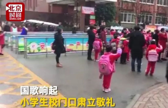 听到国歌肃立敬礼