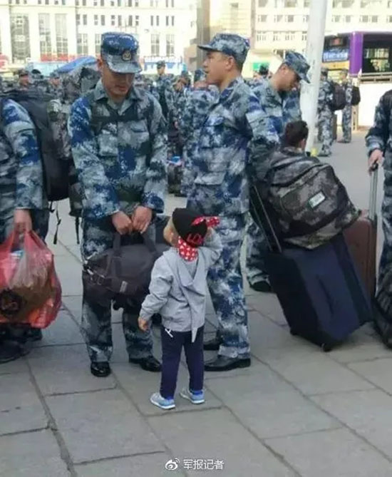 小军娃敬礼送别爸爸