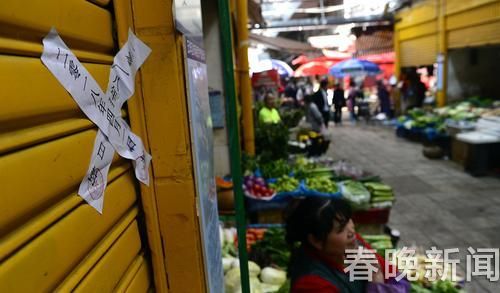 4月2日下午,记者再次对大观篆新农贸市场进行走访,发现四五家商铺关着门,门上还贴着封条。坊间传说“这几家因为接受不了涨租,四处上告被市场方封杀“。对此,龚树华表示,封条是真的,但“封杀”并不是,“他们是到了3月31日交铺面租金的期限内没有交钱,所以封了店铺的。”