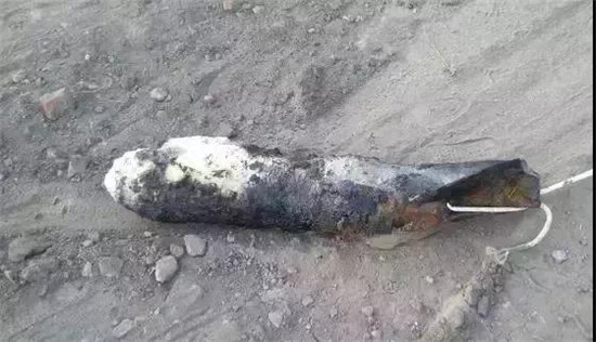 2017年6月14日早上5时许,四平市公安局铁西分局北沟街派出所接到一施工单位报警称:在某小区施工中,钩机挖出一枚炸弹,炸弹直径约为20公分,长约60至70公分,其中一部分还埋在土里。