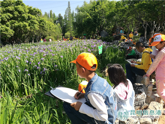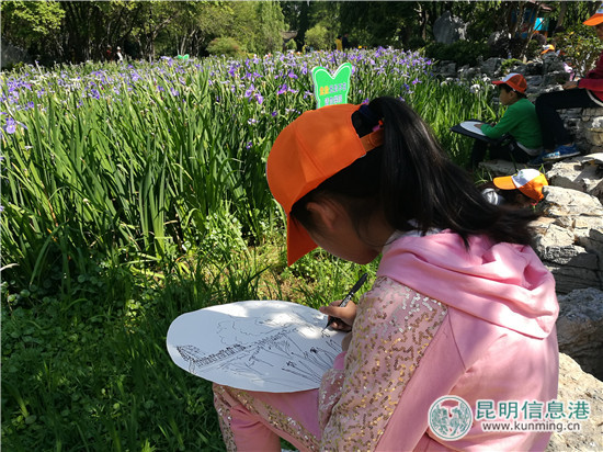 昆明信息港讯 记者杨雁 你知道梵高的精典画作《向日葵》,知道他也画过《鸢尾花》吗?那是在他去世的前一年,被誉为“圣雷米时期最伟大的作品之一”,这幅画远远地就能吸引住人们的目光,色彩丰富、线条细致而多变,整个画面充满律动及和谐之美,洋溢着清新的气氛和活力。4月21日、22日两天,500余名4-16岁的少年儿童来到西华公园,他们当起小小梵高,在花池边认真地绘画,为鸢尾花留影。