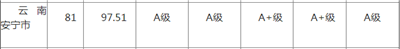 云南数据(注:中国城市小康分项指数等级为A+级,表示城市在该领域表现突出。)