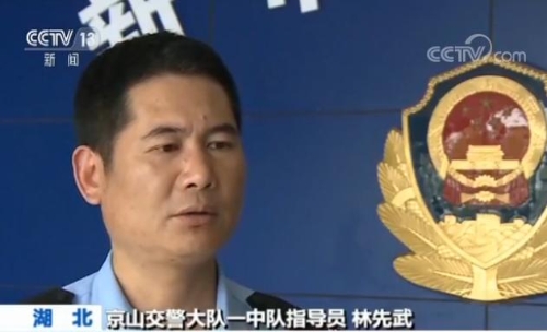 京山交警大队一中队指导员 林先武:“在这辆车在道路上冲撞的时候,我们一边疏散群众,一边组织力量想办法控制这辆车和驾驶人。”
