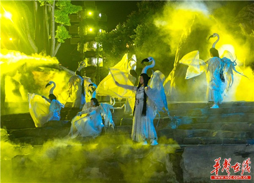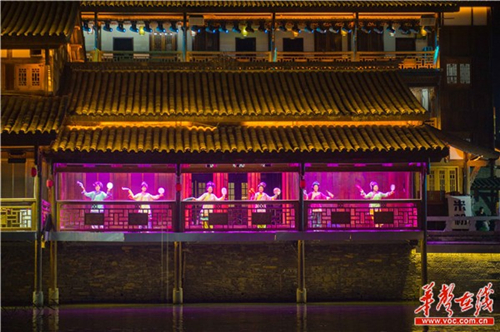 穿紫河风情灯光实景秀,充分挖掘常德丰厚的人文底蕴,赋予穿紫河风光带浓郁的水乡风情。唐俊 傅聪 摄