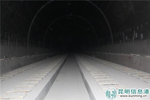 昆明信息港讯 记者上官艳君 5月28日,记者从中国铁路昆明局集团有限公司滇中铁路建设指挥部获悉,近日,由中铁十一局集团承建的成昆铁路扩能改造工程永(仁)广(通)铁路第一长隧——骄子山隧道无砟轨道施工顺利完成,达到铺轨条件,为永广铁路按时开通奠定了基础。