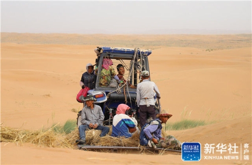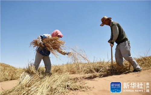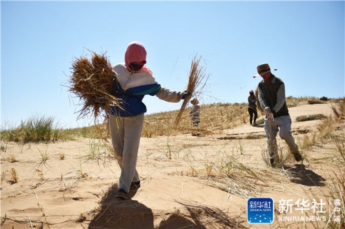 因扎草方格需要,过去农民收割完庄稼后废弃的麦草、稻草也成“宝贝”了。“以前雇机器收割小麦要给别人钱,现在不但有人免费过来帮我们收割,每亩还要支付二三十元的麦草钱。”郑自华说。