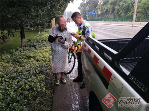 6月23日上午,昆楚大队民警巡逻时发现,一名外国男子骑自行车违法进入到高速公路上,行为十分危险。由于语言不通,机智的民警通过翻译软件和对方“说上话”,最终指引他从老320国道骑行去大理。