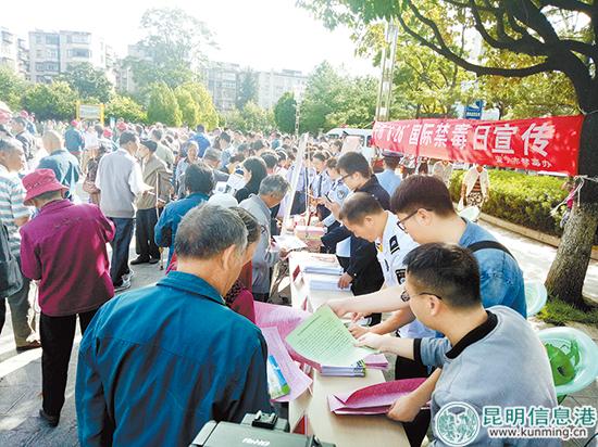 昆明信息港讯(昆明日报 记者蔡靖妮 邓磊 郭曼 赵书勇)6月26日是国际禁毒日。昆明各地开展了形式多样的禁毒宣传活动。