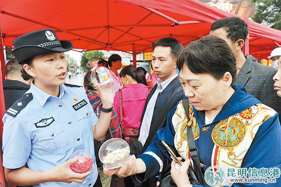 五华区民警教市民如何识别毒品。记者刘凯达/摄
