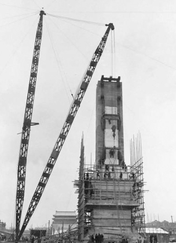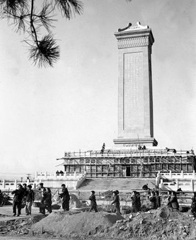 建设中的人民英雄纪念碑。 天安门管委会宣传信息处提供 |