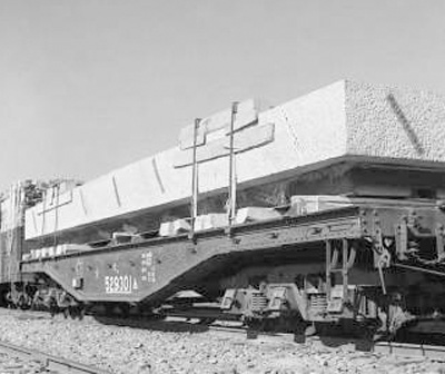 运送人民英雄纪念碑碑心石的火车。 天安门管委会宣传信息处提供 |