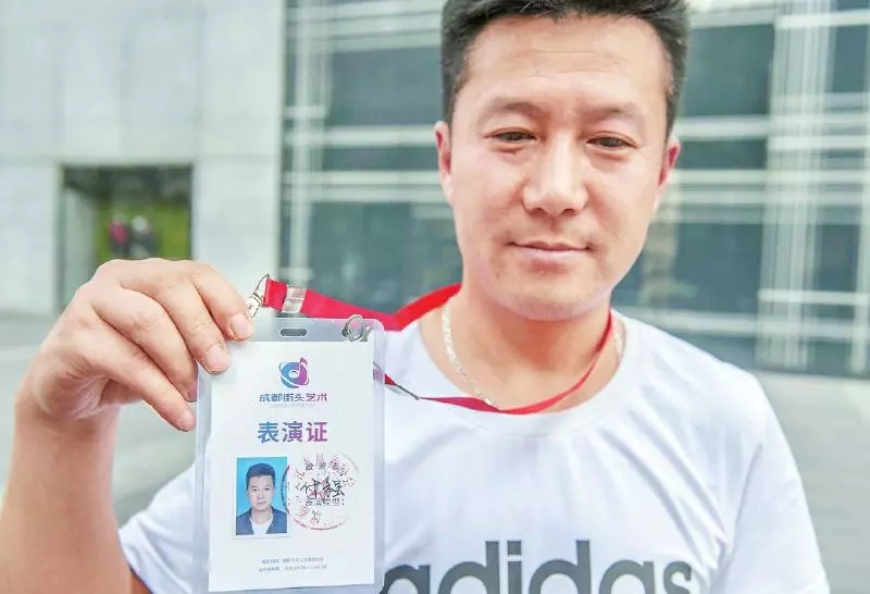 街头艺人有了表演证。杨树 摄(视觉四川)