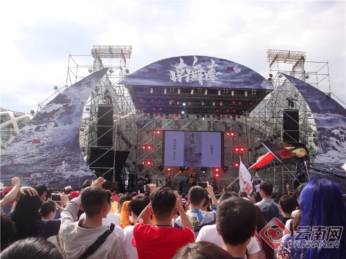 下午16时30分,在现场南舞台,马帮乐队演奏了一首首律动十足的歌曲,点燃了台下观众的激情。舞台下观众随着节奏扭动身体跳跃着,高举着双手欢呼回应,气氛十分热烈。