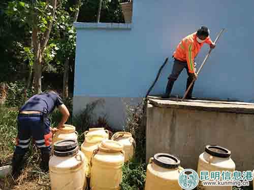 “用瓢一瓢一瓢的把粪水舀到桶里,然后再把桶挑到三轮车上运出去。”据李永和介绍,直至今年4月份之前,他的工作方式一直是以人工掏粪的方式进行。今年4月1日,云南京环海洁接手了该片区116个旱厕(已有6个动迁,现为110个)的保洁工作后,开始引入吸粪车并投入使用。由于常规8吨的吸粪车车体较大,遇到一些狭窄的村内小路便无法进入,该公司专门向厂家定做了载重1.69吨的小型吸粪车,并于今年5月份投入使用。