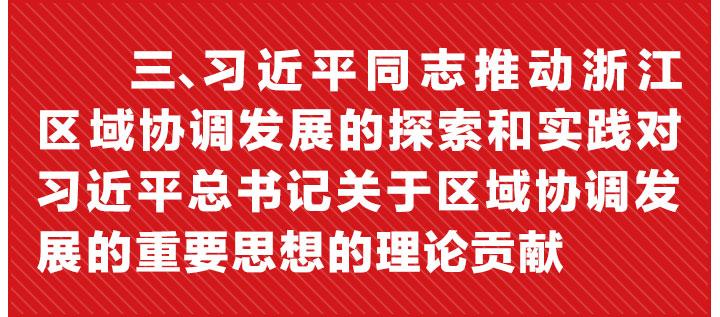 习近平同志高度重视、积极谋划区域协调发展,无论是在浙江工作期间,还是到中央工作,他关于区域协调发展的重要论述都体现了对区域协调发展规律的精准把握和不断创新,对推动浙江和全国区域协调发展起到了重要指导作用。