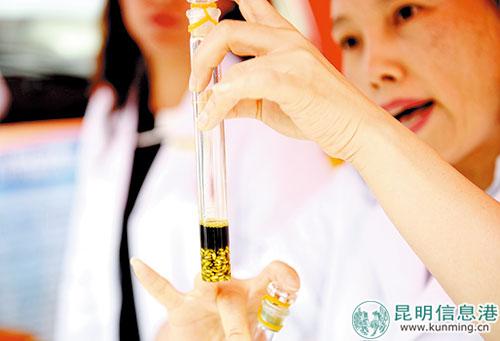 昆明信息港讯(昆明日报 记者孙潇)抓一小撮大米放入试管中,再加入几滴试剂没过米粒,摇晃几下之后,泡着陈米的试剂就变成了浅黄色,而泡着新米的试剂却成了墨绿色。“好神奇!”围观群众纷纷发出惊叹。这是昨日发生在2018年“全国食品安全宣传周·粮食质量安全宣传日”主会场活动上的一幕。