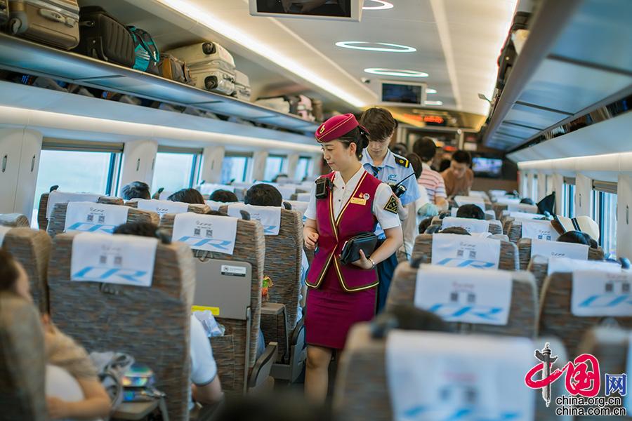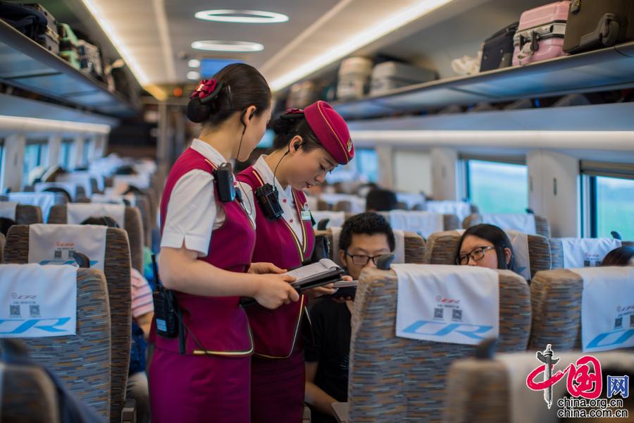 出生于1984年的赵小琴2003年进入铁路工作,走过北京-九龙的T97次列车,2007年成为全路首开动车第一批乘务员……15年来,从普速庞巴迪,到和谐号,再到复兴号,每一个车型都有她工作的身影,同时她也亲历了铁路发展的多个重大节点。中国网 郑亮摄