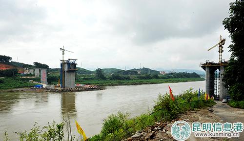 一跨澜沧江的景洪澜沧江大桥正在进行梁部施工。