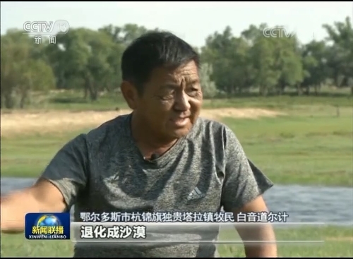 鄂尔多斯市杭锦旗独贵塔拉镇牧民 白音道尔计:原来在这儿放的是700至800多(只羊),放了几年,我这草场,就逐步退化成沙漠。