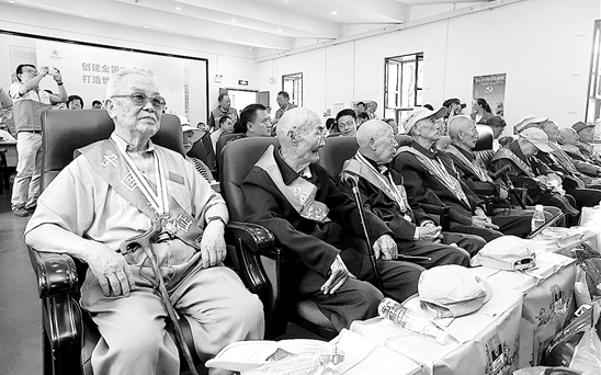 当天10位老兵参加了庆祝仪式,他们分别是90岁的王权、93岁的颜嘉铭、94岁的方国洪、87岁的董纲、92岁的刘本藩、89岁的符世德、100岁的毕光远、92岁的党仁清、96岁的张明仁以及96岁的马宁常。