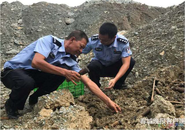 接到报警后,麻栗坡县公安局船头派出所民警立即赶往现场了解情况,经询问得知,施工队伍在施工过程中,发现土里有很多手榴弹,民警立即要求施工队停止施工,并对周围进行警戒。