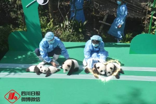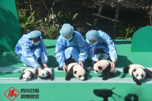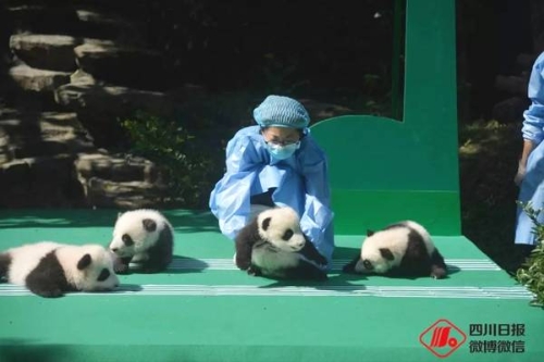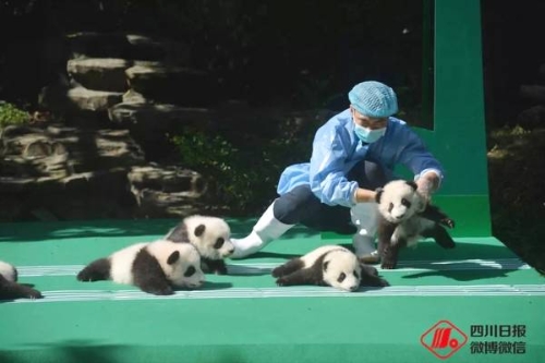 9月28日,成都大熊猫繁育研究基地(以下简称“成都熊猫基地”)为今年出生的12只新生大熊猫举行了一场别开生面的亮相活动。