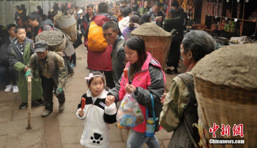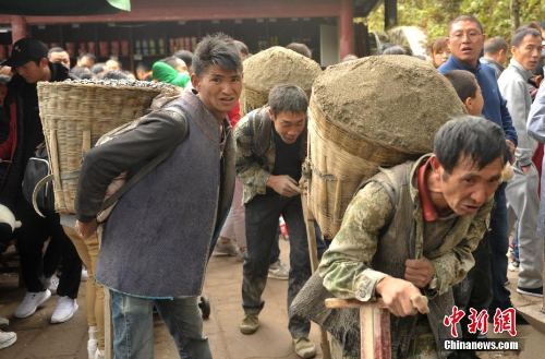 峨眉山金顶背山工的年龄从20多岁到50多岁不等,有男有女。