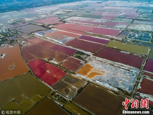 入秋以来,随着气温的改变,山西省运城盐湖泛起出色彩斑斓、美不胜收的秋天特有的七彩景致,非常迷人。