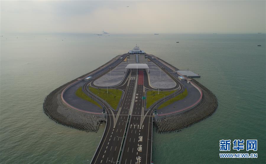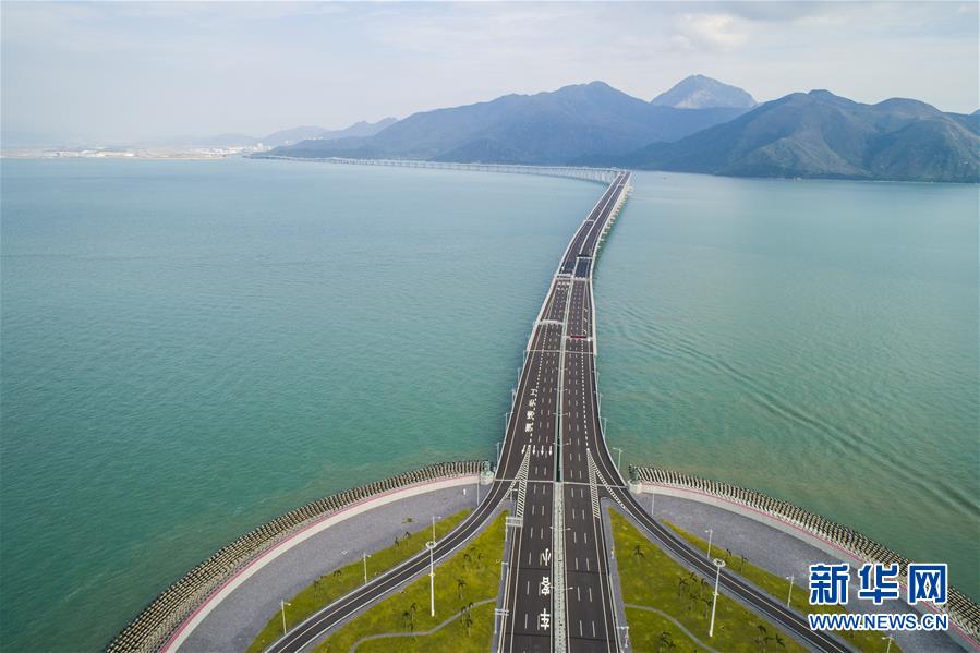 即将于10月24日通车的港珠澳大桥跨越伶仃洋,在香港、珠海和澳门三地之间架起一条直接陆路的通道。港珠澳大桥香港段由东端的香港口岸人工岛和向西连接大桥主体的12公里香港接线组成,是这一超级跨海通道的重要组成部分。 (新华社 记者吕小炜)