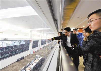 图为留学生参观具有世界一流管理水平和技术保障的北京市轨道交通指挥中心应急调度指挥大厅。