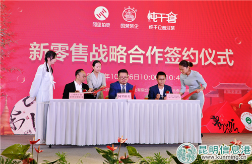 昆明信息港讯 10月26日,阿里拍卖、八角亭茶业、纯干仓茶业新零售战略合作签约仪式暨“花朝茶夕”拍卖会在昆明举行,拍卖会系本届昆明茶博会的系列活动之一。三方将联手打造茶类智慧零售门店的新标杆,争做茶业新零售领域的样板。