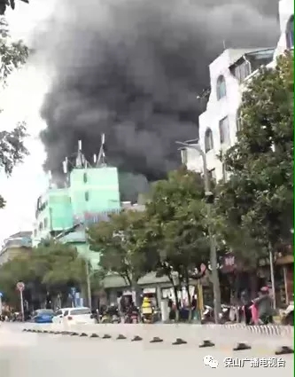 由于起火区域位于商场,周边仓库内存放着易燃物较多,又正值干冬季节,短时间内燃烧的大火就蔓延开来,同时向上空突起一股股浓烟。