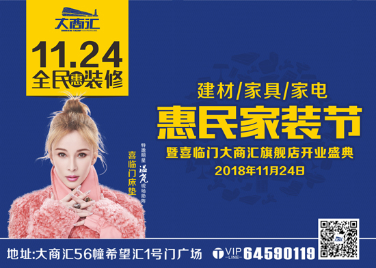 昆明信息港讯 记者合宇聪 大商汇“惠民家装节”——暨喜临门大商汇旗舰店开业盛典将于11月24日举行。活动当天,大商汇将联合25个家装品牌进行惠民促销,歌手温岚也将亲临喜临门大商汇旗舰店为活动助力。