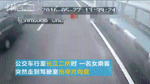 车载监控视频显示:当时,公交车行驶到长江二桥中部时,这位中年妇女突然站起身,嘴里不停地喊着:“师傅,停车。”这时,其他乘客纷纷劝阻说,桥上不能停车。但是,这名中年妇女不但不听劝阻,反而走到驾驶室边,再次要求停车。