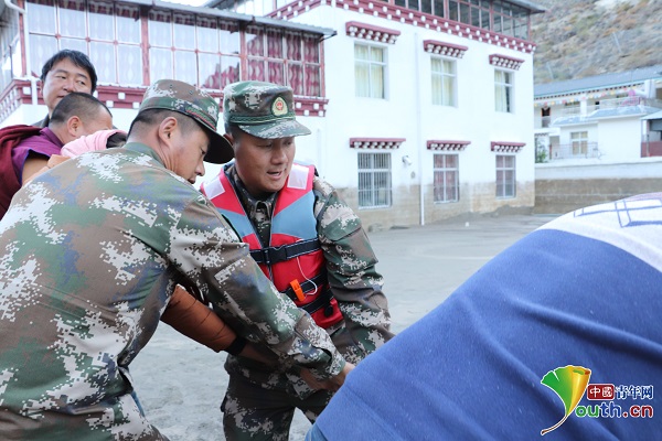 此次堰塞湖泄洪情况紧急,接到命令后,这支部队立即启动应急响应机制,11月12日支队先期出动90名官兵在丽江石鼓镇、黎明镇、巨甸镇开展搭建帐篷、转移群众救援行动。11月13日20时支队再出动300人,携带救生衣、救生艇、日常用品等救援物资连夜赶赴香格里拉经济开发区、德钦县奔子栏镇等救灾地点,协助地方民政部门运送安置帐篷、钢床、棉被、褥子等物资到预定安置点。截至11月15日中午,官兵连夜帮助地方群众搭建帐篷55顶,运送救灾床400张,大衣100捆,转移群众939人,帮助群众转移牲畜、家电等价值300余万元物资,有效确保了人民群众的生命安全和财产安全。