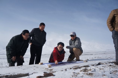 汪双杰(中)带领团队在高原考察冻土。