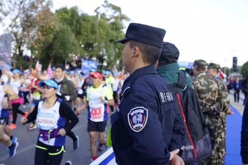 昆明信息港讯 记者合宇聪 12月2日,云南盐业·2018上合昆明国际马拉松在春城昆明举行,来自51个国家和地区的嘉宾及20000余名选手参与本届赛事。昆明公安机关提前着手谋划、反复勘查线路,认真研究部署安保工作,确保此项赛事安全顺利进行。