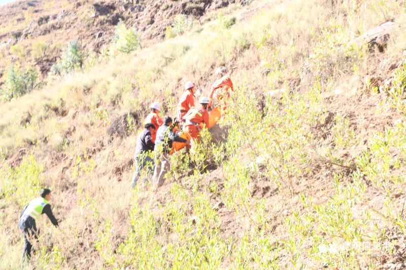 经过救援人员30多分钟的搜索,终于在悬崖最底部发现事故车辆和被困人员,驾驶员已经被当地干农活的好心村民救出车外,但因头部伤势严重,如不及时进行治疗,可能会有生命危险。