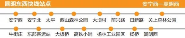 市域铁路东西线(安宁嵩明线)是连接昆明市区——安宁——太平——主城——空港经济区——嵩明的线路,全长98.4千米。其中地上线、地下线共计49.56公里,高架线33.5公里。
