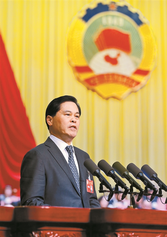 省政协副主席高峰受政协云南省第十二届委员会常务委员会委托,向大会报告省政协十二届一次会议以来的提案工作情况。