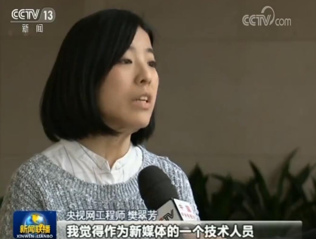 央视网工程师 樊翠芳:作为一名新媒体的技术人员,我觉得落实总书记要求的关键在要加快技术平台的建设,加快对云计算、大数据、人工智能等各项新技术的应用,打造主流媒体的大数据平台。